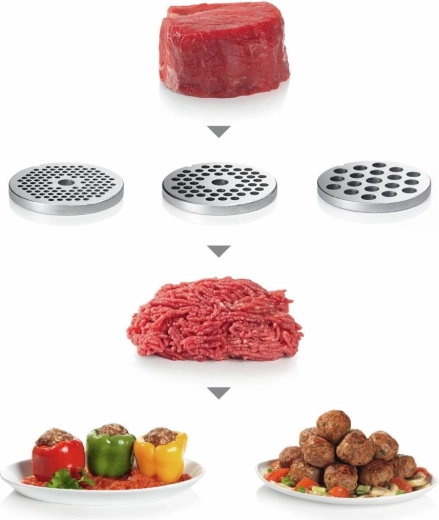 - Le hachoir gère facilement de grandes quantités d’aliments grâce à son moteur performant – 3,5 kg/min