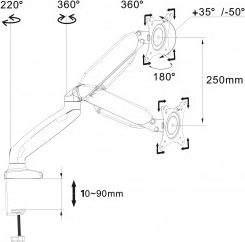 Améliorez votre espace de travail avec le support de moniteur à ressort à gaz, qui permet un réglage facile et fluide de la position de l'écran. Idéal pour les moniteurs LCD/LED de taille 10-32".