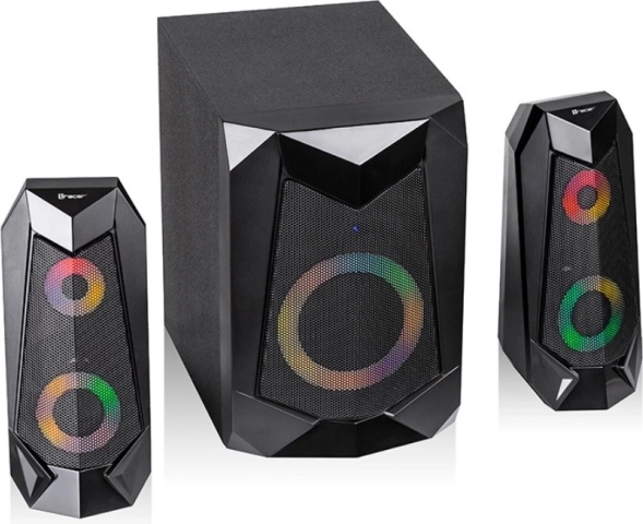 Tracer Hi‑Cube RGB Bluetooth est un ensemble multimédia 2.1 stylé conçu pour les joueurs et le divertissement à domicile. Le caisson de basses en bois assure des basses profondes et précises, tandis que les satellites délivrent des médiums et des aigus clairs. Grâce au Bluetooth 5.0, connectez votre téléphone, ordinateur portable ou console sans câble jusqu’à environ 10 m.