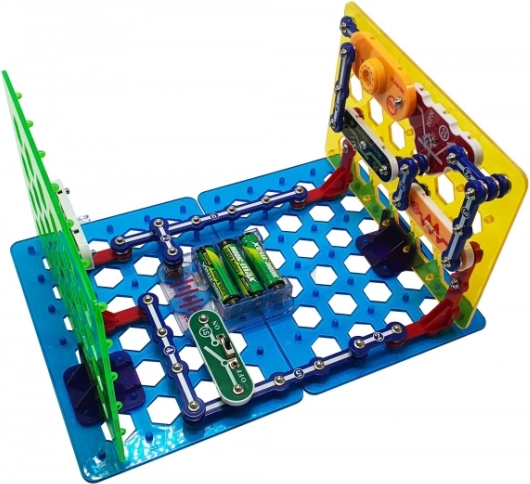 Le kit BOFFIN II Ma maison est idéal pour les enfants dès 8 ans qui souhaitent comprendre les principes de l’électricité et de la maison intelligente. La base est une plaque perforée sur laquelle les pièces se clipsent facilement — sans soudure, en toute sécurité et avec un résultat immédiat. Construisez un éclairage, une alarme, une maison à deux étages, un moulin à vent ou une maison de fête et vérifiez le fonctionnement selon les schémas fournis.