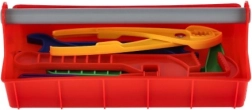 Légère et robuste, la boîte avec poignée garde les 5 outils bien rangés et est idéale en voyage comme dans la chambre d’enfant.