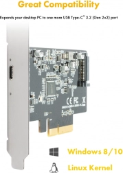 Carte PCIe avec USB‑C 3.2 Gen 2x2 (20 Gb/s)