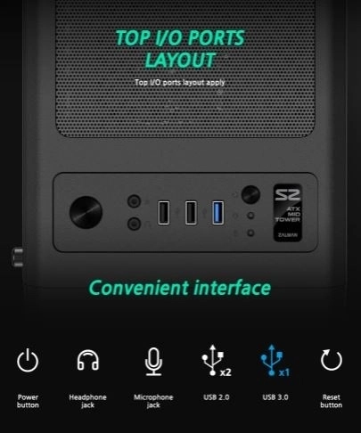 Le refroidissement est optimisé pour un débit d’air élevé : 3× ventilateurs 120 mm sont installés d’usine et vous pouvez en monter jusqu’à 8 au total. Les filtres anti‑poussière supérieur (magnétique) et inférieur protègent les composants et simplifient la maintenance. Une chambre séparée pour l’alimentation améliore le flux d’air et l’esthétique de l’ensemble.