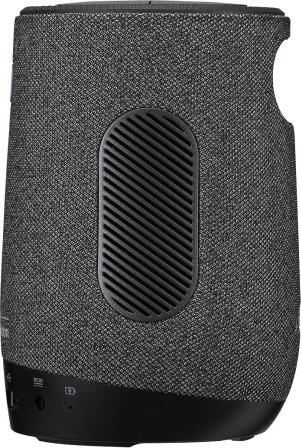 La forme cylindrique textile avec commandes supérieures se transporte aisément, tandis que le haut-parleur intégré harman/kardon (selon la série) offre un son clair et étonnamment ample. La connexion est simple : HDMI pour les sources vidéo, USB pour l’alimentation ou les médias et Bluetooth pour l’audio sans fil. La projection sans fil depuis le mobile permet un partage de contenu rapide.