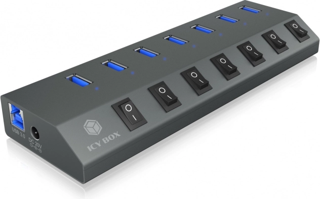 Hub USB 3.0 7× USB-A avec interrupteurs individuels – ICY BOX