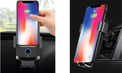 Support de voiture pratique avec charge sans fil Qi, mâchoires automatiques à capteur infrarouge et trois options de fixation (grille d’aération, ventouse sur pare-brise ou tableau de bord). Prend en charge la charge rapide 10 W/7,5 W/5 W, dispose d’un USB‑C et maintient le téléphone à basse température grâce à une gestion intelligente. Convient aux téléphones avec écran de 4,7–6,4" et une largeur de 65–100 mm.