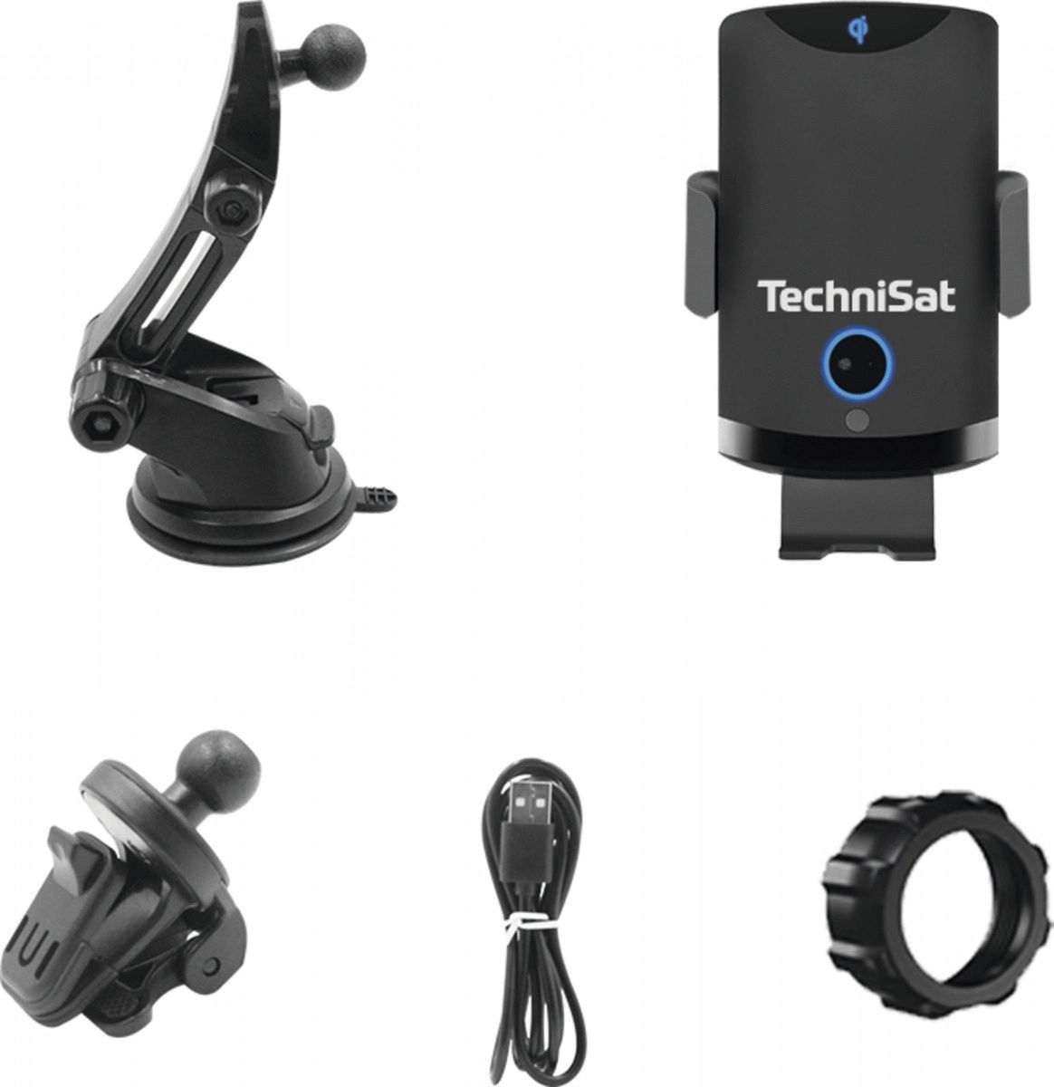 - Support avec charge sans fil, support à ventouse, clip d’aération, câble USB‑C, bague de montage