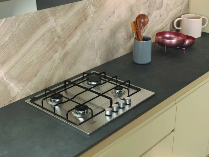 Plague de cuisson au gaz sophistiquée WHIRLPOOL TGML650IX pour votre cuisine moderne. Avec de nouveaux brûleurs et un contrôle intuitif, elle garantit une flamme parfaite pour chaque prouesse culinaire.