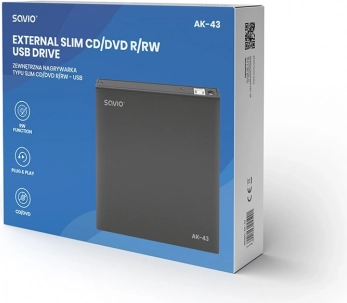 Le graveur slim externe SAVIO ajoute à votre ordinateur portable, ultrabook ou PC de bureau une solution fiable pour la lecture et l’écriture de CD et DVD. Alimenté par USB, il ne nécessite pas d’adaptateur externe et grâce au Plug & Play, il se connecte et s’utilise instantanément.