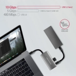 - 10 000 / 5 000 / 480 / 12 / 1,5 Mb/s (SuperSpeed+ / SuperSpeed / High / Full / Low)