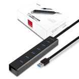Sept ports avec prise en charge SuperSpeed assurent un transfert fluide de gros fichiers et une connexion périphérique fiable. Rétrocompatibilité avec USB 2.0/1.1.