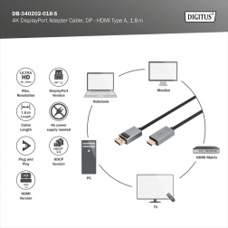 Câble DisplayPort vers HDMI 4K 30 Hz – 1,8 m