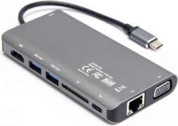 Ce hub propose des ports HDMI, VGA, deux USB 3.1, RJ45, USB-C avec Power Delivery, un lecteur de carte SD et une prise audio 3,5 mm.