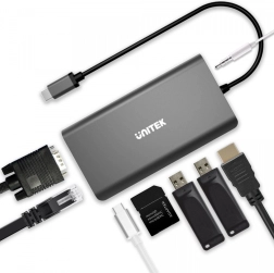 Ce hub USB-C 8-en-1 Unitek est conçu pour les appareils portables nécessitant plus de ports disponibles. Il offre