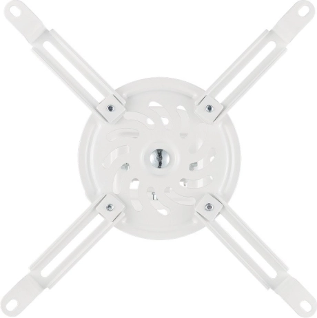 Support plafond pour projecteur universel blanc avec réglages précis offrant une rotation à 360°, une inclinaison ±15° et des bras réglables 54–320 mm. Grâce à sa construction métallique robuste et à ses multiples points de fixation, il garantit une installation sûre pour le home cinéma comme pour le bureau.