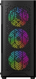 Le Fornax 400X est un élégant midi tower qui mise sur un design épuré et un flux d’air efficace. Le panneau avant perforé avec filtre anti-poussière et les ventilateurs ARGB préinstallés assurent un excellent refroidissement ainsi que des effets lumineux attrayants, faciles à harmoniser avec les autres composants.