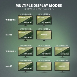 Le puissant hub Axagon HMC-4KX3 permet de connecter trois moniteurs simultanément, chacun avec une résolution allant jusqu'à 4K/30Hz. Grâce à la prise en charge du HDR, vous profiterez d'une palette de couleurs et de contrastes plus étendue. L'interface USB 3.2 Gen 1 permet un transfert de données rapide jusqu'à 5Gb/s, garantissant un travail efficace avec les fichiers.