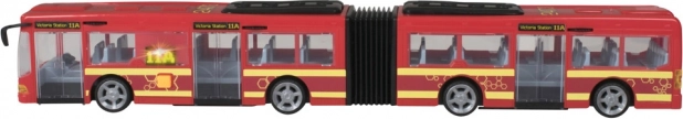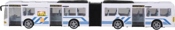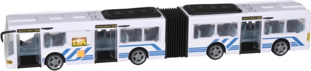 Le bus est soigneusement conçu avec des fenêtres détaillées, des portes et une articulation qui imite un véritable bus articulé.