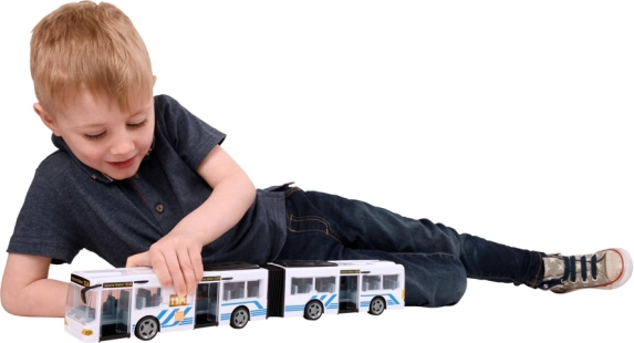 Nous vous présentons le bus Teamsterz qui apporte du plaisir à chaque jeu d'enfants. Ce modèle de bus fascine par ses détails réalistes et sa fonctionnalité qui inclut: