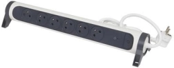 Cette rallonge protégée avec barrette orientable offre six prises de type 2P+T au standard franco-belge. Sa capacité totale est de 3680 W et la tension de 230 V, idéale pour un usage domestique ou bureautique. La barrette peut être orientée de 12° de chaque côté, facilitant le branchement même dans les espaces limités.