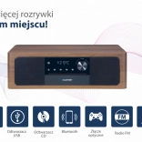 - Large connectivité – Bluetooth, entrée optique, USB, AUX 3,5 mm, tuner FM avec 40 présélections.