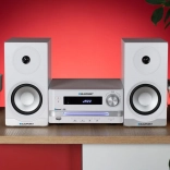 Grâce à l’amplificateur intégré de 50 W RMS, au réglage des aigus et des basses, aux préréglages d’égaliseur (POP, ROCK, JAZZ, CLASSIC, NORMAL) et à la fonction Loudness, vous obtenez un son équilibré et puissant à faible comme à haut volume. L’écran LED avec affichage de l’heure et alarme ajoute un confort malin au quotidien.