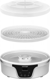 Équipé de 7 grilles ajustables, il assure une surface suffisante pour le séchage et la possibilité d'ajuster la hauteur pour sécher de plus gros morceaux d'aliments. Le ventilateur intégré assure une répartition uniforme de la chaleur entre les différents niveaux, optimisant ainsi le processus de séchage. Pour des résultats parfaits, il est recommandé de changer les positions des grilles pendant le séchage.