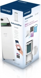 Une commande tactile intuitive est complétée par un indicateur LED coloré d’humidité et 4 modes : Auto, Fonctionnement continu, Séchage du linge et Ventilateur. Via l’application mobile Concept Home (iOS/Android) ou Tuya Smart, allumez l’appareil à distance, programmez des horaires et contrôlez l’état de l’air. Pour un séchage prolongé, un tuyau peut être raccordé pour l’évacuation continue de l’eau.