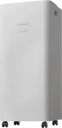 CONCEPT Perfect Air OV2216 associe déshumidification efficace et purification d’air avancée dans un seul appareil. Grâce à une capacité jusqu’à 16 l/jour et à un grand réservoir de 3,5 l, il réduit rapidement l’humidité et empêche la formation de moisissures. La filtration en 4 étapes avec préfiltre, filtre à charbon, UVC et ioniseur capture poussières, allergènes, odeurs et micro‑organismes pour un intérieur plus propre et plus sain.