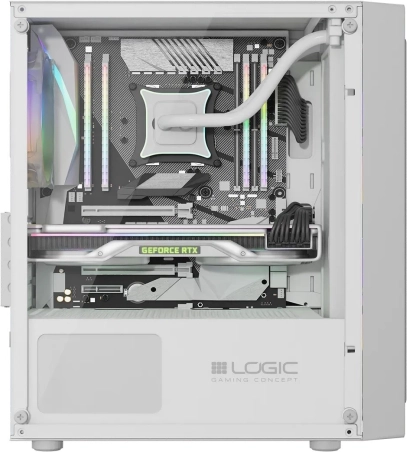 LOGIC Atos ARGB mini est un boîtier blanc élégant conçu pour les PC de jeu modernes. La façade aérée en maille mesh et deux ventilateurs 120 mm ARGB préinstallés assurent un excellent flux d’air, des températures plus basses et un fonctionnement silencieux. Vos composants fonctionnent ainsi plus efficacement et plus longtemps.