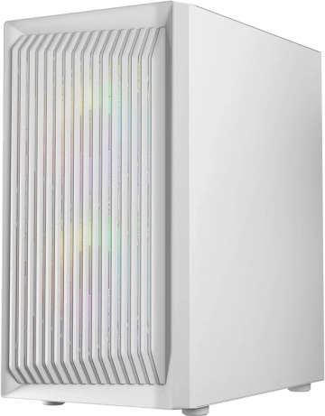 Boîtier de jeu compact axé sur le refroidissement : panneau avant en mesh, deux ventilateurs 120 mm ARGB installés d’origine et panneau latéral en verre trempé. Prise en charge d’un ventirad CPU de 160 mm et d’un GPU de 290 mm, connecteur USB 3.0 et contrôle facile de l’éclairage.