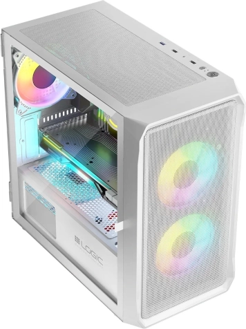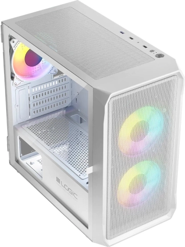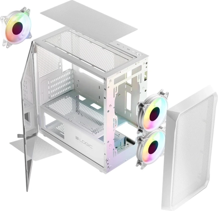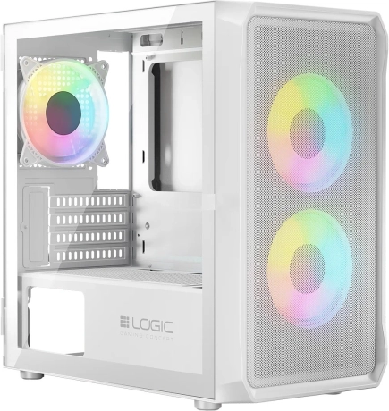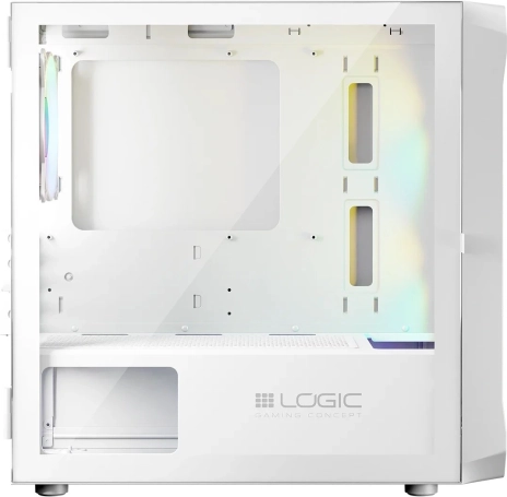 LOGIC Portos ARGB Mini est un boîtier PC pour joueurs à la fois stylé et bien pensé, qui économise de la place sur le bureau tout en offrant un flux d’air de premier ordre et une maintenance aisée. Le panneau latéral en verre trempé sur charnières fonctionne comme une porte – ouvrez-le simplement et dépoussiérez l’intérieur à l’air comprimé. Deux ventilateurs avant et un arrière ARGB 120 mm refroidissent efficacement les composants, tandis que les panneaux avant et supérieur perforés assurent une excellente ventilation.