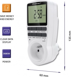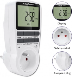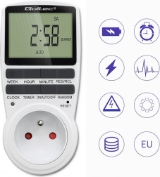 Minuterie électronique Qoltec avec écran LCD, 16 A, 3680 W