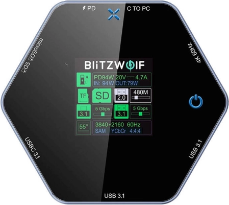 Station d’accueil 8‑en‑1 BlitzWolf BW-TH16 USB 100W avec écran LCD