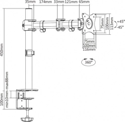 Support de bureau pour moniteur avec bras et pince, 1x jusqu’à 27", 8 kg, pivotant et inclinable 360° (pivot)
