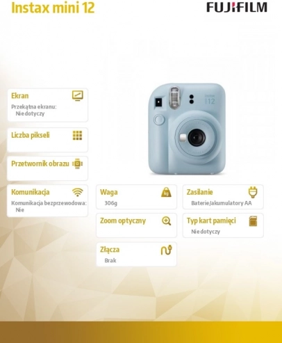 L’appareil photo instantané Instax Mini 12 bleu de la marque Fujifilm est le compagnon idéal pour la photographie instantanée. Cet appareil compact est facile à transporter, imprime des photos immé... Voir plus
