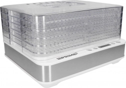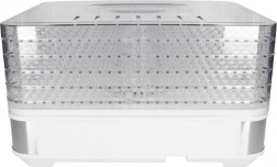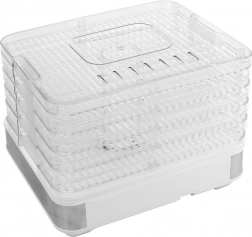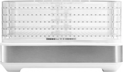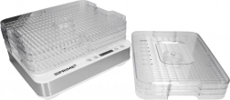 Le séchoir SFD51 de la marque PRIME3 est équipé de cinq plateaux transparents de 3 cm de hauteur et de dimensions 32x25 cm, offrant une surface totale de séchage de 3250 cm2. Cela permet de sécher simultanément une grande quantité de fruits récoltés ou de fruits préférés. Puissance de 420 W permettant d'atteindre des températures élevées nécessaires pour sécher de plus gros morceaux de fruits ou ceux plus humides, comme des tranches de pommes par exemple. La circulation d'air forcée améliore la circulation et permet un séchage plus homogène des produits.