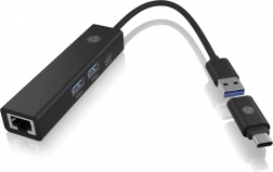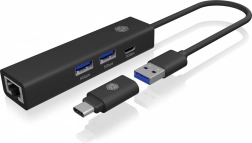 - 4 en 1 : 2× USB‑A, 1× USB‑C, 1× RJ45 GbE