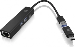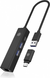 Un adaptateur pour ports hôtes USB‑C et USB‑A est inclus, ce qui permet d’utiliser facilement le hub avec des ordinateurs portables modernes comme avec des PC plus anciens, sans restriction.