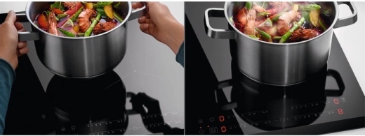 La table de cuisson communique sans fil avec une hotte compatible et ajuste automatiquement sa puissance ainsi que son éclairage en fonction de l’intensité de cuisson. Hotte recommandée : LFG716R H2H.
