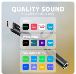 Profitez d’une musique de meilleure qualité que la sortie standard d’un ordinateur portable. L’AXAGON ADA‑HC avec son DAC Hi‑Res 384 kHz/32 bits performant offre une large plage dynamique et une faible distorsion, pour que les formats sans perte comme FLAC, WAV, ALAC et les flux premium de Spotify, Apple Music, YouTube Music ou Amazon Music s’expriment pleinement. Grâce au connecteur TRRS 3,5 mm combiné, vous branchez un casque ou un micro‑casque et gérez aisément vos appels sur WhatsApp, Messenger, FaceTime, Skype, Zoom, MS Teams, Google Meet ou Discord.
