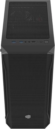 - Connectique riche sur le panneau supérieur : 2× USB 3.0, 1× USB 2.0, audio HD, boutons Power/Reset