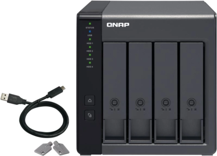 Le boîtier d’extension RAID TR-004 avec interface USB 3.0 permet d’augmenter la capacité de stockage d’un serveur QNAP NAS ou d’un ordinateur. Le TR-004 peut également être utilisé comme stockage externe connecté directement (DAS) : il suffit de le brancher sur le port USB de l’appareil pour accéder à ses disques. Le châssis TR-004 intègre quatre baies SATA de 3,5 pouces et prend en charge plusieurs options de configuration RAID. Associé à une connexion USB 3.0 Type‑C, il constitue une solution fiable et sécurisée pour étendre l’espace de stockage.
