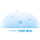Une des bandes utilise un canal de 160 MHz, augmentant considérablement la largeur de bande par rapport aux canaux traditionnels de 80 MHz. Cela apporte une amélioration notable de la vitesse et de la qualité de connexion.
