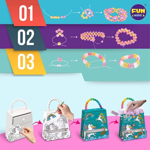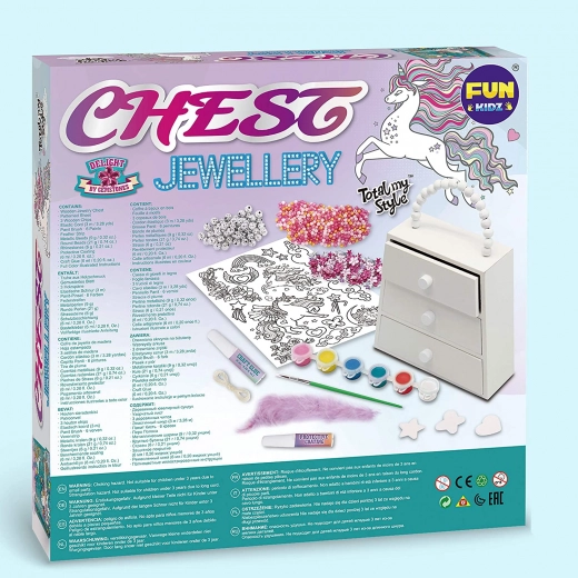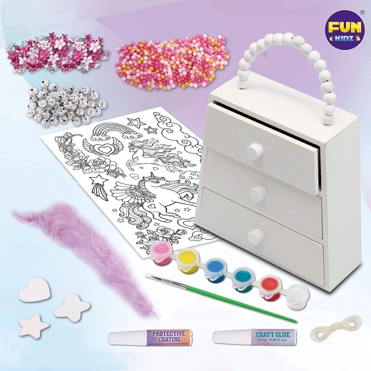 • Le kit comprend une boîte à bijoux en bois, un pinceau, 6 couleurs, une ficelle, de la colle et une large gamme de décorations.