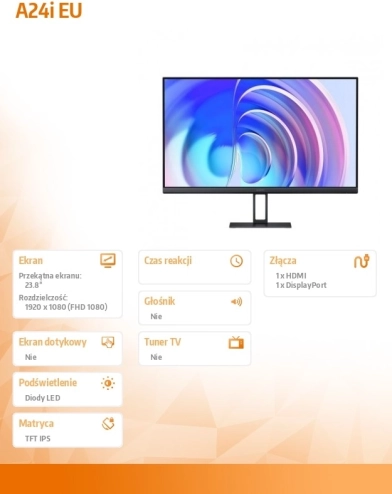 Élégant moniteur Xiaomi A24i avec dalle IPS 23,8", résolution Full HD, taux de rafraîchissement 100 Hz et larges angles de vision.