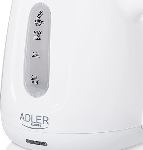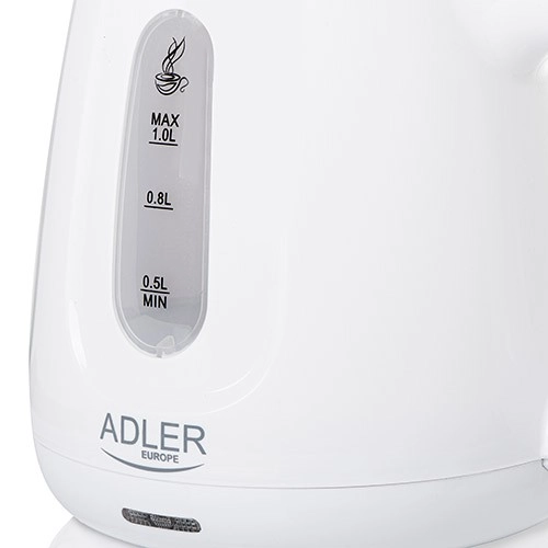 La bouilloire électrique ADLER 1 l est une aide pratique pour la cuisine, le bureau ou la résidence étudiante. Avec 850 W, elle chauffe l’eau de manière économe et fiable. La base plate et l’indicateur de niveau d’eau lisible facilitent l’usage quotidien, tandis que l’arrêt automatique à ébullition et la protection contre le fonctionnement à vide assurent la sécurité.