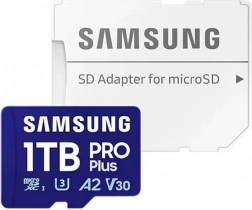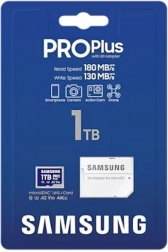 Étendez le stockage et les performances de votre appareil avec la carte SAMSUNG PRO Plus microSDXC 1 To et son adaptateur SD. Elle offre des vitesses jusqu’à 180/130 Mo/s (lecture/écriture), les classes U3, V30, A2 pour la vidéo 4K et les applications exigeantes, ainsi qu’une protection 6 fois renforcée contre l’eau, les températures extrêmes, les rayons X, les champs magnétiques, les chutes et l’usure. Idéale pour les smartphones Android, tablettes, caméras d’action, drones et même les consoles de jeux.
