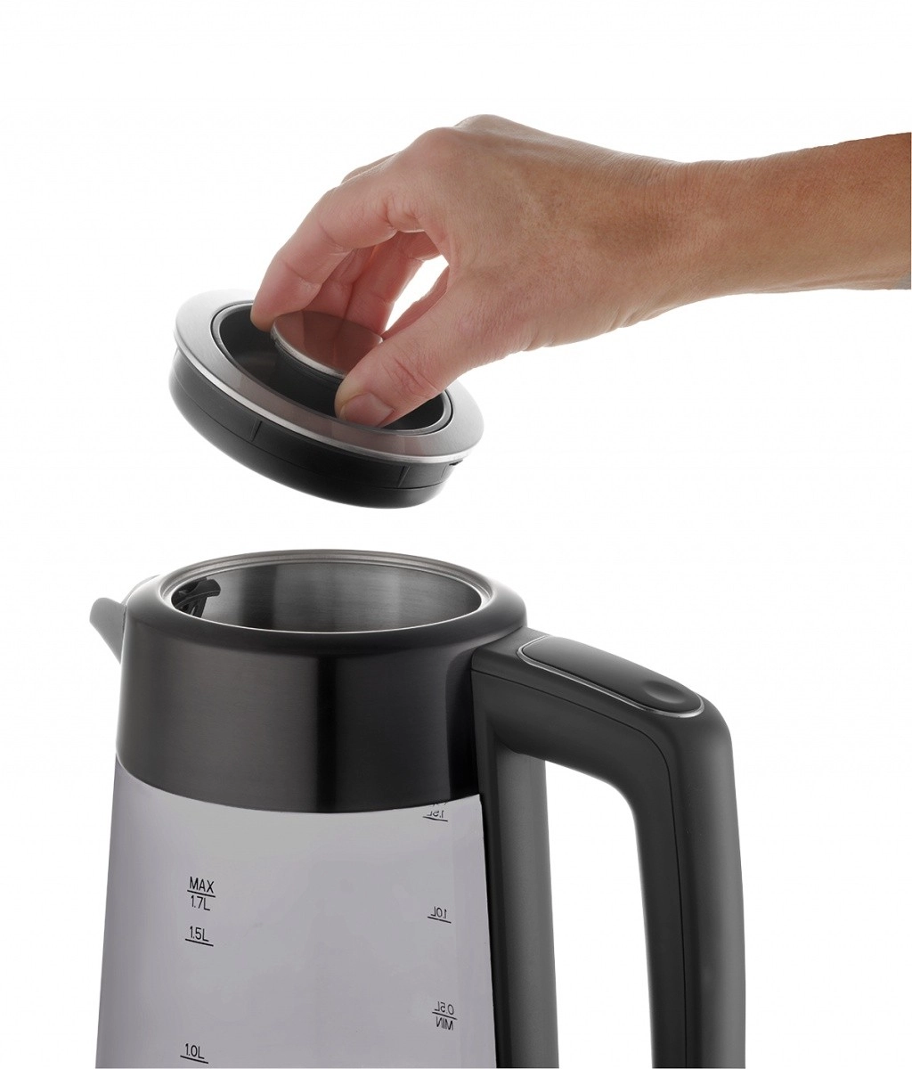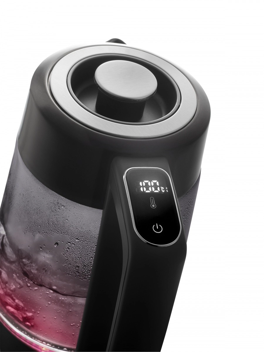 Le design moderne en verre fumé est agréablement complété par un éclairage coloré qui change en fonction de la température actuelle de l’eau. Le socle minimaliste sur lequel repose la bouilloire lui confère une touche d’élégance. Il est muni d’un rangement pour le câble, vous permettant d’ajuster sa longueur selon vos besoins.