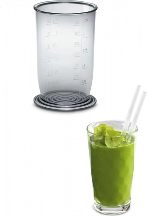 Récipient pratique avec graduations pour un dosage précis et le mixage de petites portions. La jambe de mixage amovible facilite le nettoyage et le rangement.